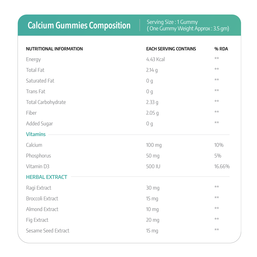 Calcium, Phosphorus, Vitamin D3, Ragi Extract, Broccoli Extract, Almond Extract, Fig Extract, Sesame Seed Extract